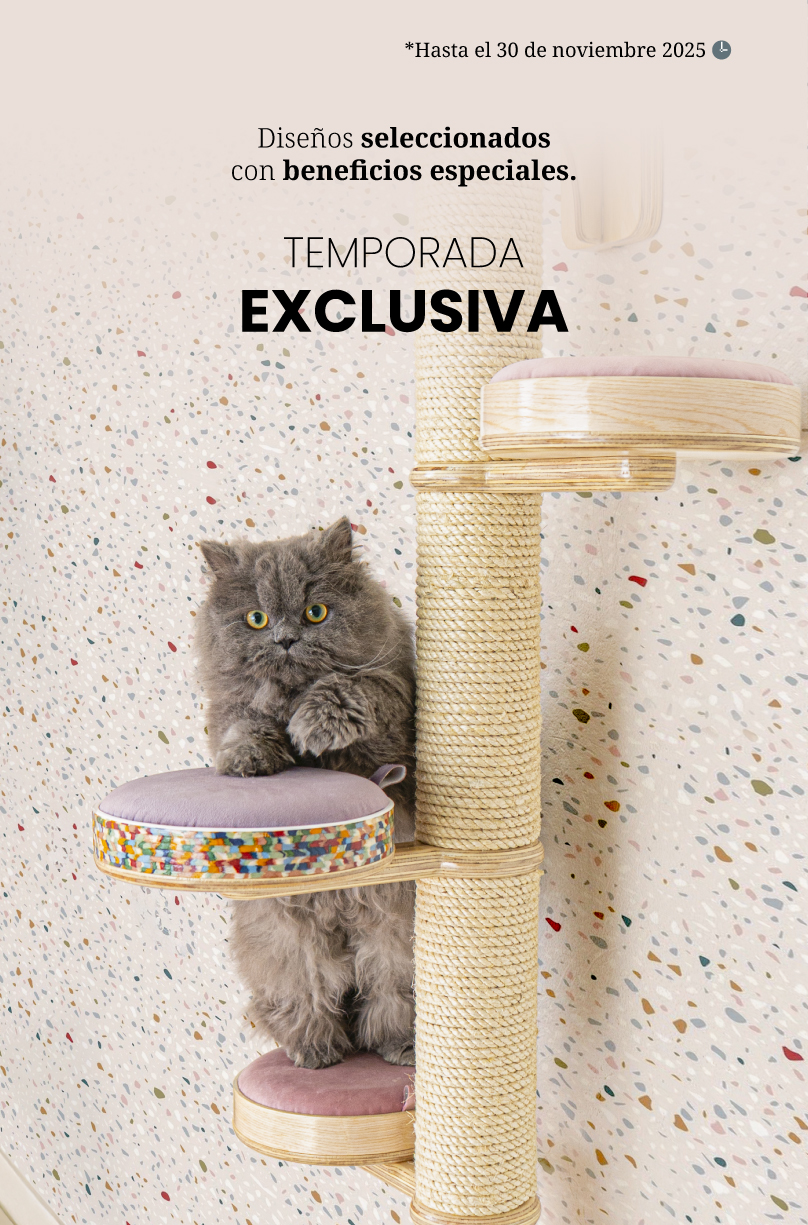 Muebles que elevan tu hogar y respetan el instinto de tu gato. Diseño que convive con tu estilo y conquista su descanso.